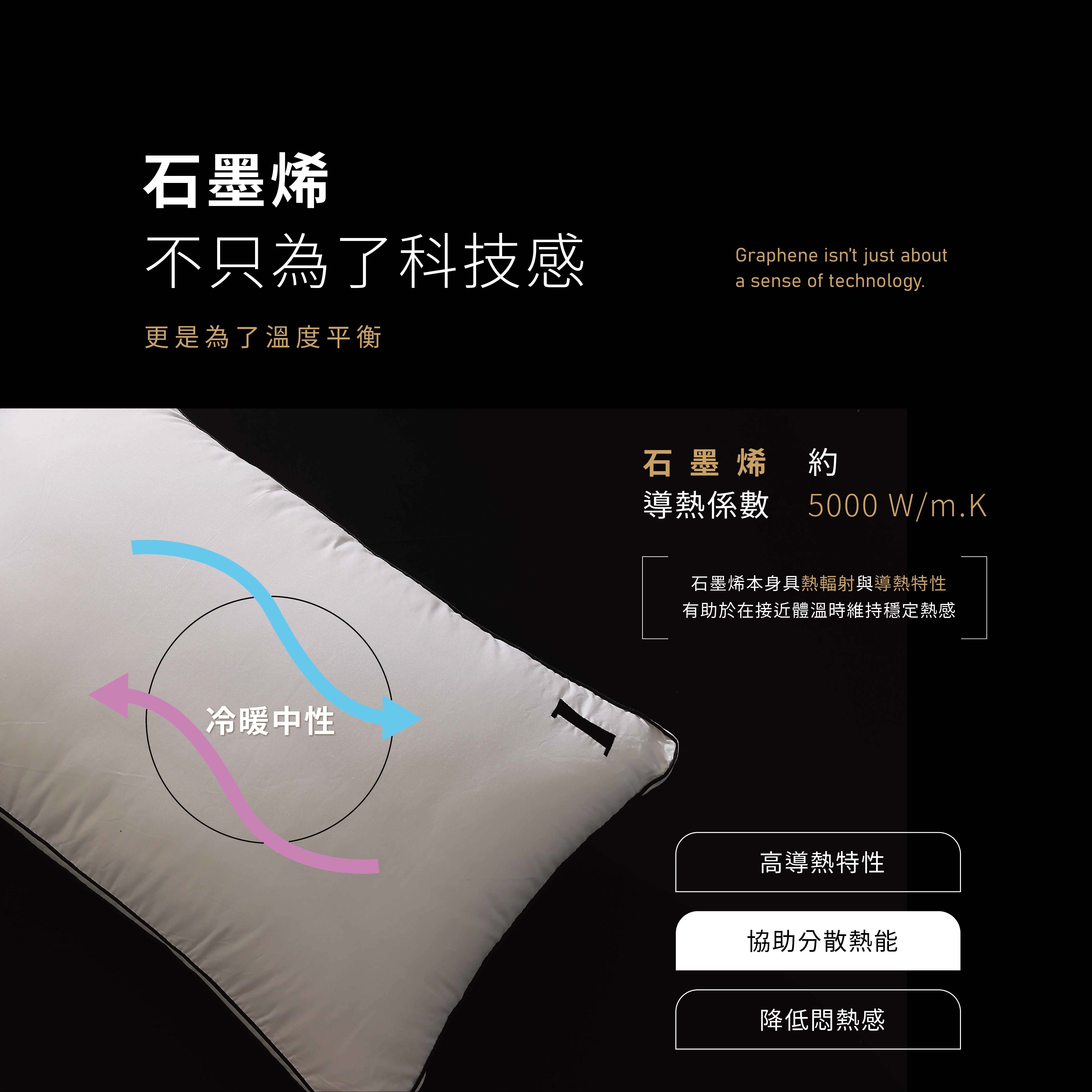 • 石墨烯機能纖維:溫度平衡,降低悶熱感