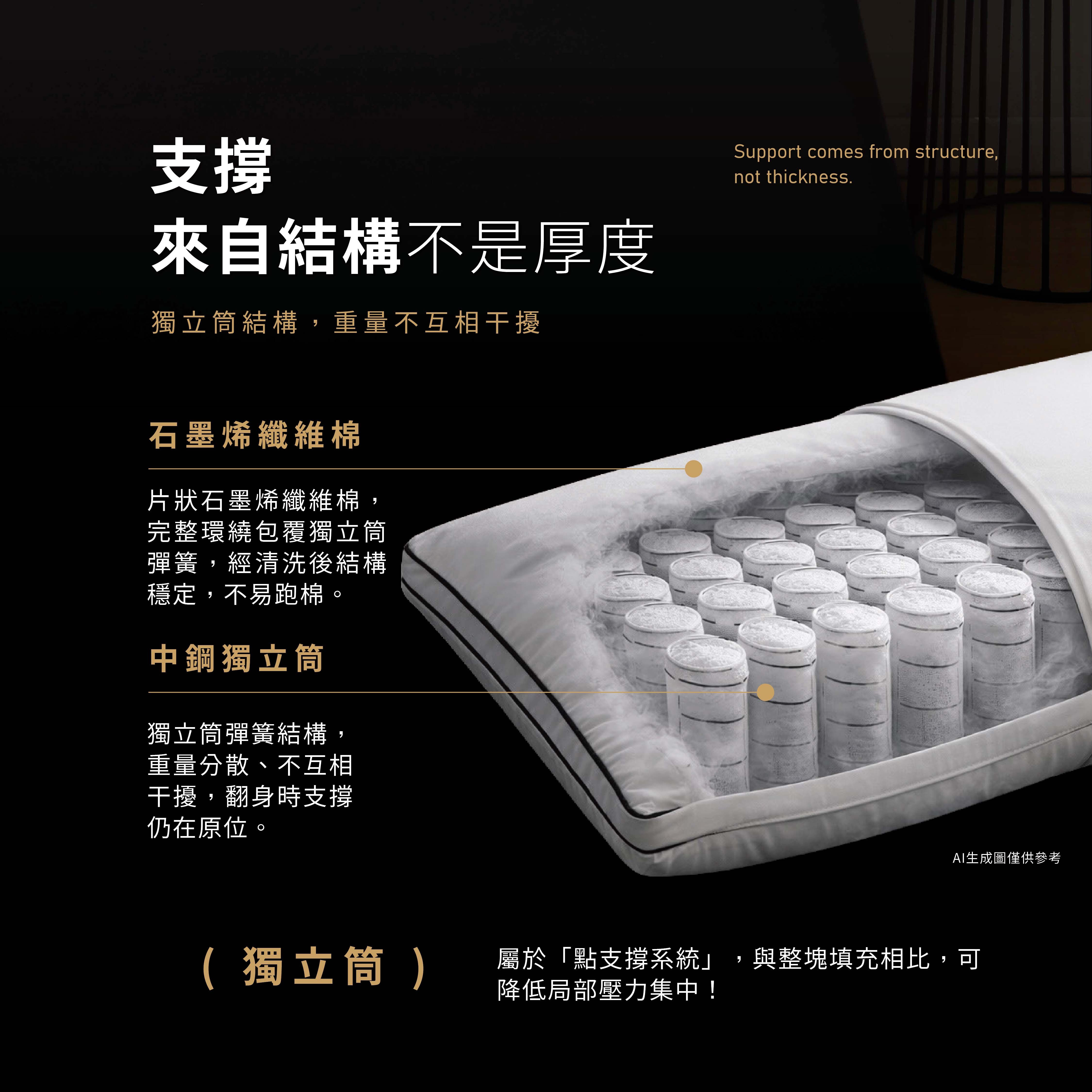 #枕芯填充物:台灣中鋼防鏽鋼材(50顆袋裝獨立筒)+石墨烯機能纖維