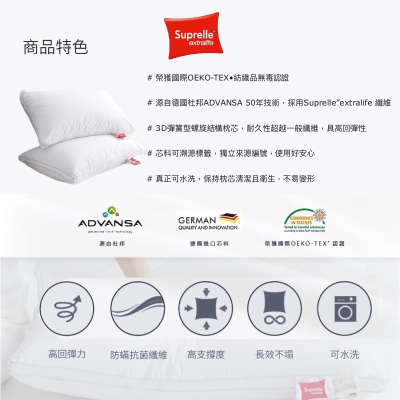 #內容物:Suprelle Extralife 可水洗高彈枕x1