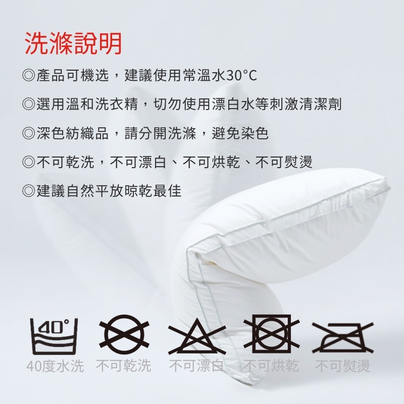 #可水洗特性,潔淨衛生,洗完之後置於陰涼處風乾,輕輕拍打恢復蓬鬆,不結塊不變形。