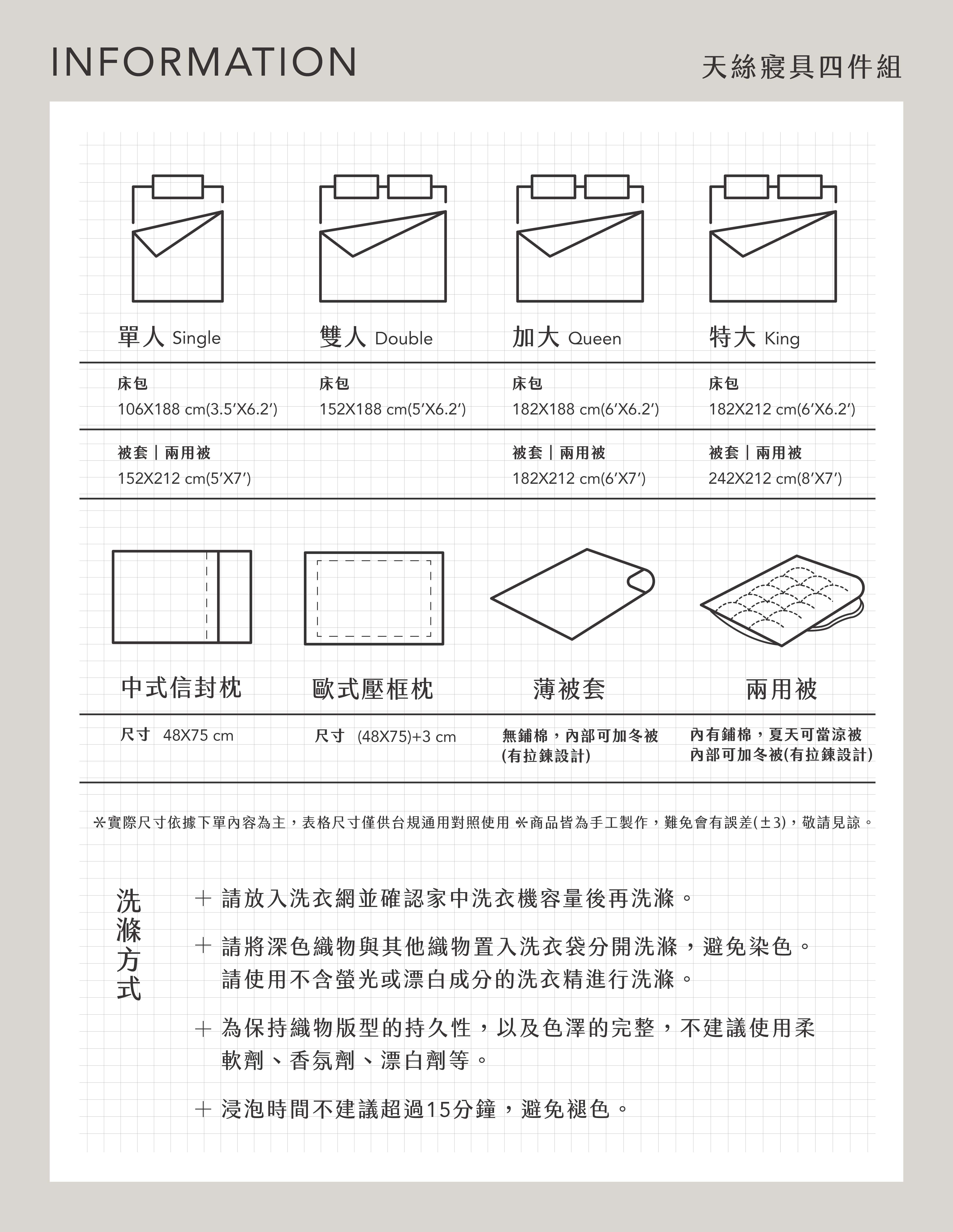 組合而成,背面設有隱藏式拉鍊,四季皆可直接當凉被使用,冬季寒冷時亦可裝入厚被胎,讓暖度加倍升溫。