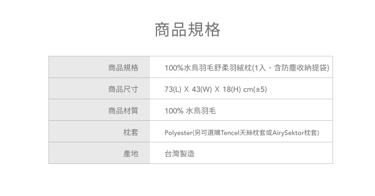 • 100%水鳥羽毛—上選羽絨/羽毛材質